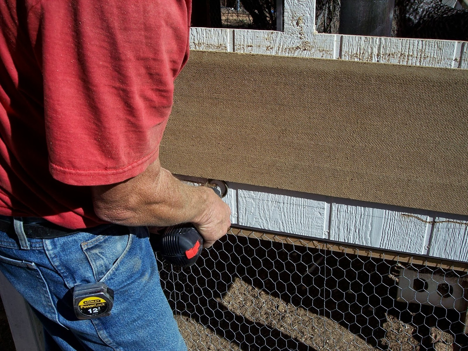 View from other side, the camera had a Coop Closed for Cleaning sign up and we had carpet inside so we could crawl in and screw the new section into place.